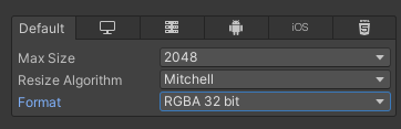 대체 뭘까 하면서 텍스쳐 프로퍼티를 살펴보다가 Format이 Automatic으로 되어 있는 것을 발견했다.