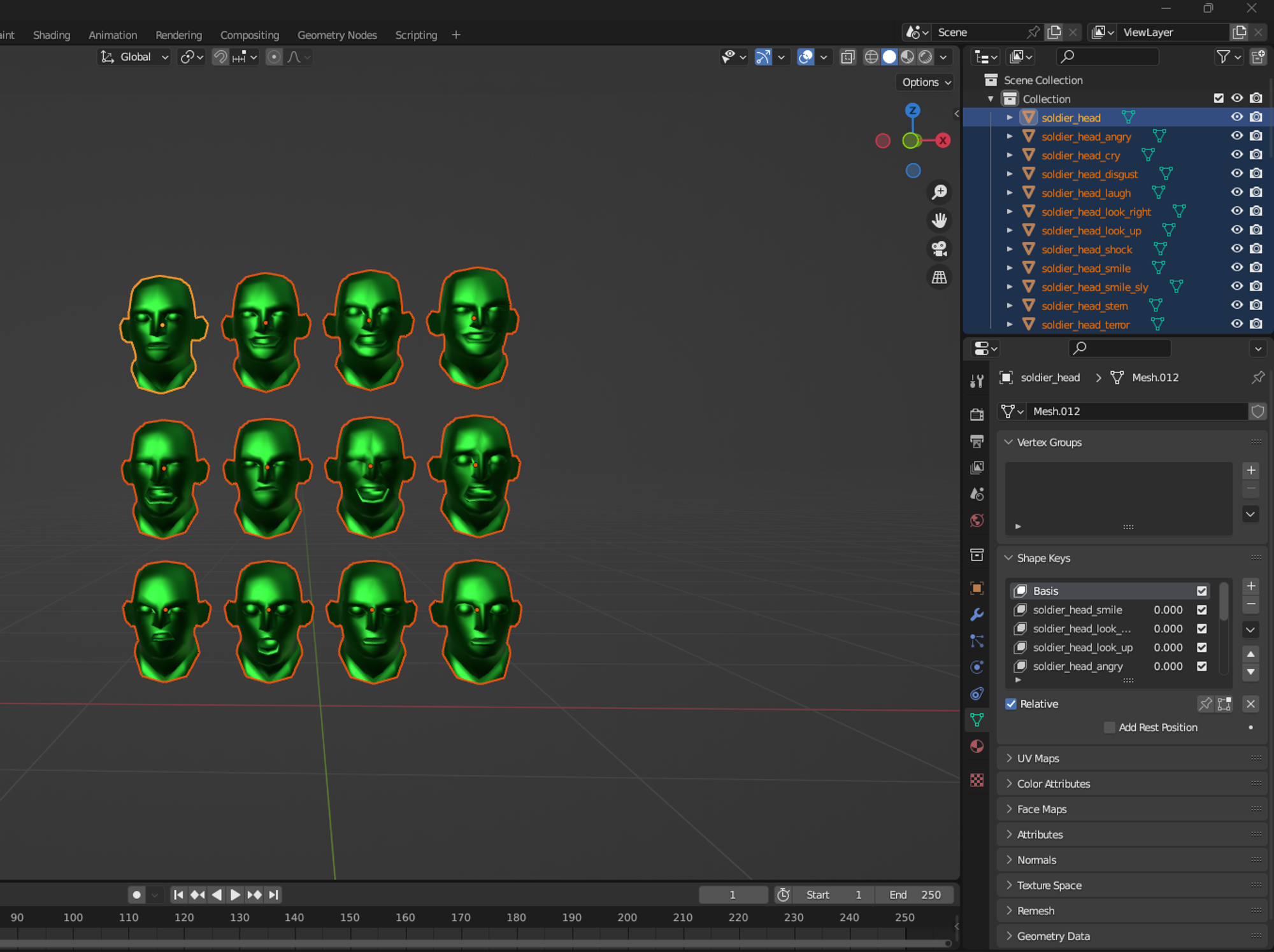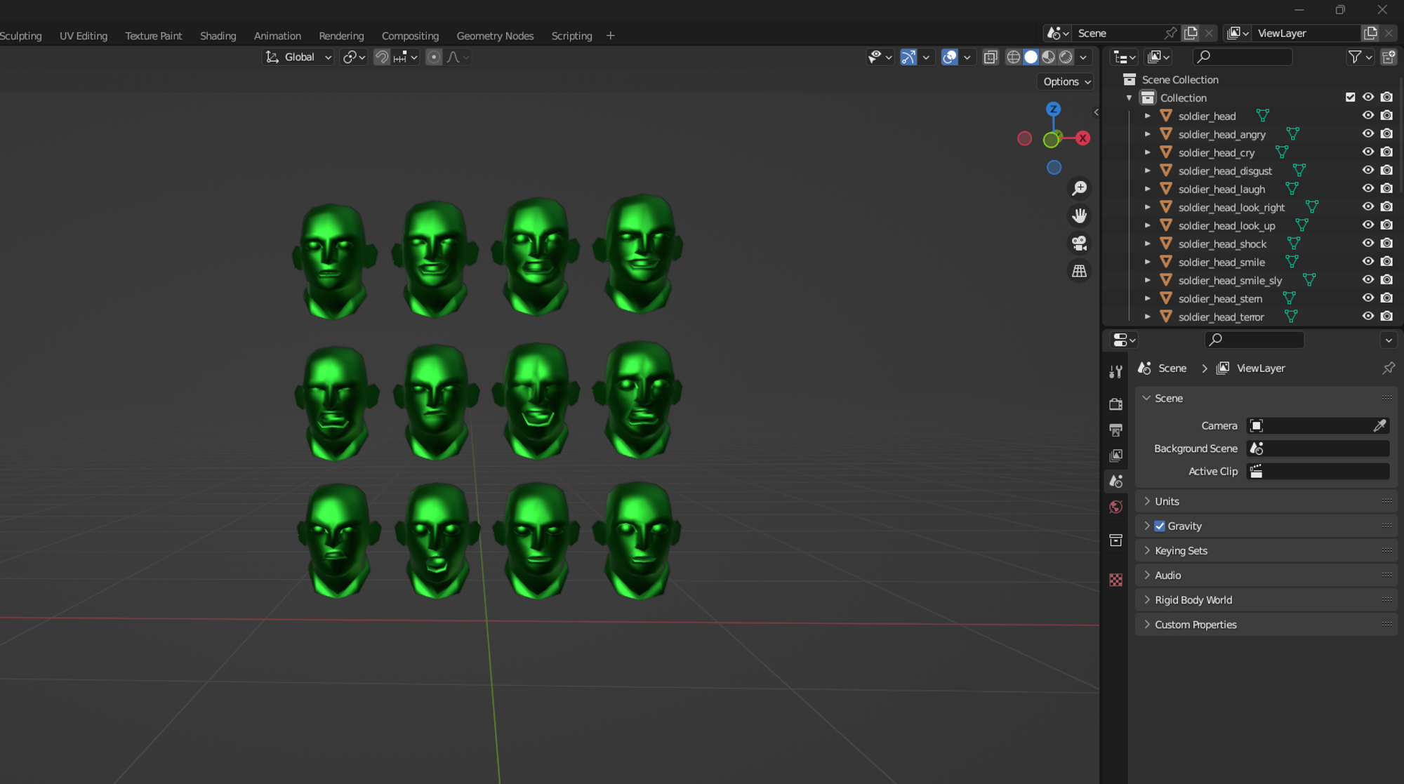 먼저 여러 표정의 얼굴 메시를 아래 링크에서 다운로드 받은 후 블렌더로 Import한다.